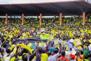 “When there is tarmac road, a stadium like this one; when there are schools or hospitals, at night do you sleep on the tarmac? do you sleep in the school or the hospital?” asked President Museveni.